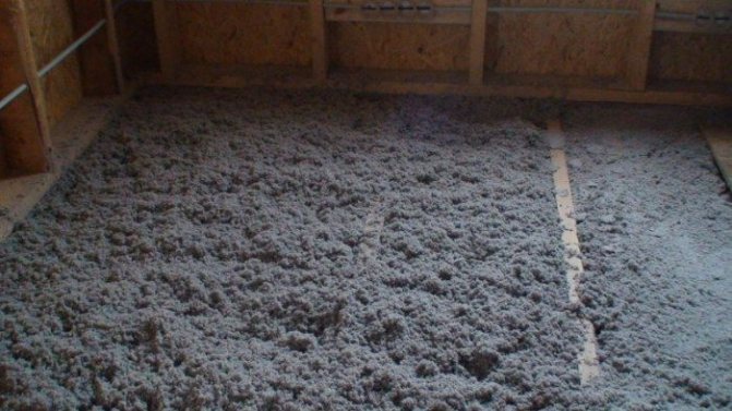 Mit Hilfe von ecowool werden auch horizontale Flächen isoliert. Es können jedoch nur die Decke und der Boden selbst isoliert werden, da eine geeignete Ausrüstung erforderlich ist, um die Wände von innen zu isolieren.