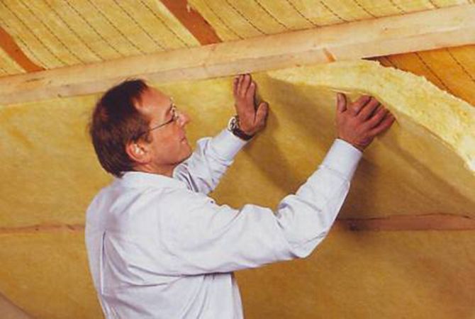Glaswolle wird häufig bei Isolierungsarbeiten verwendet. Dieses Material ist billiger als Basaltmineralwolle und weist eine höhere Wärmeleitfähigkeit auf. Für die Isolierung von innen sollte nur eine spezielle Art von Glaswolle verwendet werden, die mit einer Folie abgedeckt werden muss. Aufgrund der kleinen gesundheitsgefährdenden Partikel, die bei der Installation durch Glaswolle freigesetzt werden, müssen Sie sich mit einer Schutzausrüstung für Haut und Atmungsorgane schützen. Die Glaswolleisolierung sollte umschließende Elemente enthalten.