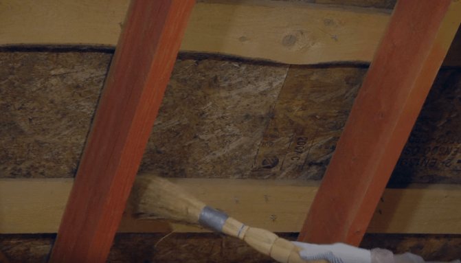 Die Dampfdurchlässigkeit von gesprühtem Polyurethanschaum mit geschlossenen Zellen ist so gering, dass PU-Schaum ohne Verwendung von Dampfsperrmembranen sicher verwendet werden kann, um das Dach von innen zu isolieren (siehe Abbildungen). Dies ist die einzige Isolierung, die eine solche Vielseitigkeit aufweist, wenn keine negativen Konsequenzen in Form von Kondensation auf der Basis und den Herden des Pilzes auftreten.