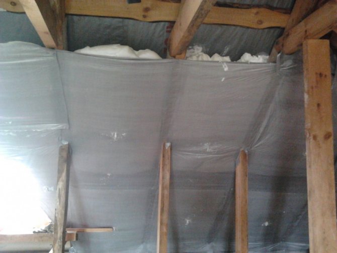 - Installieren Sie eine Abdichtungsfolie entlang der Oberkante der Sparren.