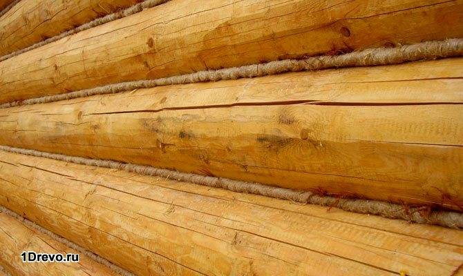 Wenn die Wände schrumpfen, wird das Juteband zwischen den Kronen gleichmäßig verdichtet. Es verrottet praktisch nicht.