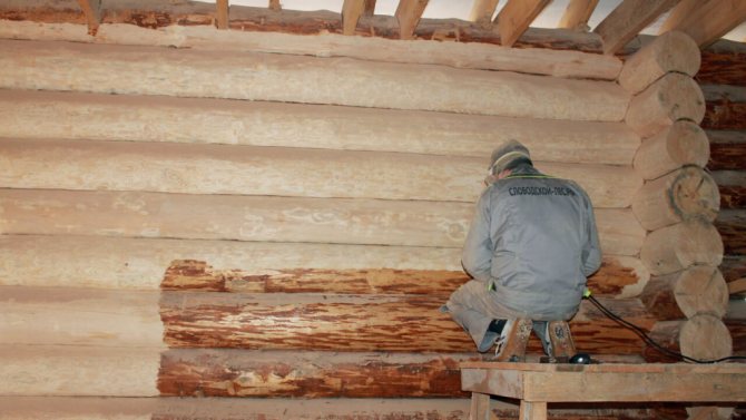 Wenn zwischen den Stämmen eine Lücke besteht, fügen Sie Isolierstücke hinzu. Je weniger Hohlräume vorhanden sind, desto höher ist die Arbeitsqualität.