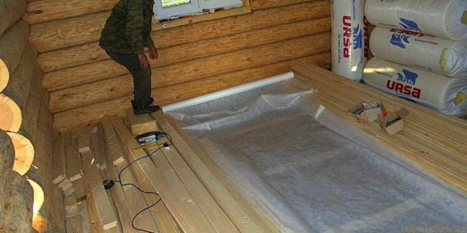 Eine Innenwanddämmung mit Belüftung ist unwirksam. Legen Sie die Dämmung fest auf die Stämme und erhöhen Sie die Wärmekapazität des Holzes durch Eindicken.