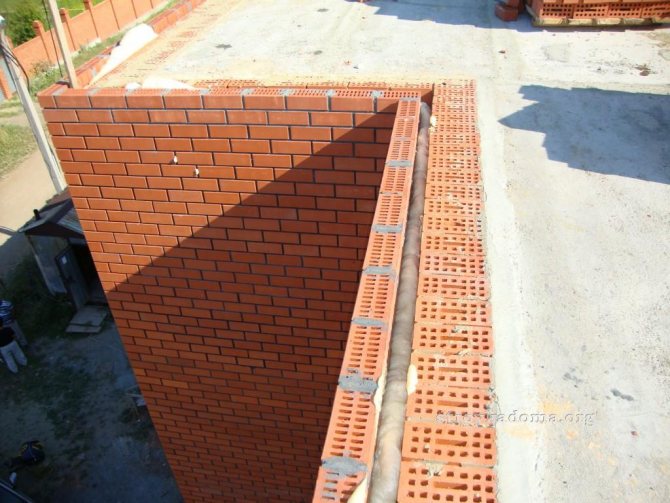 - Zur Belüftung der Schicht im unteren Teil der Wand wird ein geschlitzter Ziegel installiert, am Rand oder im unteren Teil der Wand platziert. Ziegel oder Blöcke werden nicht nahe beieinander und nicht in einiger Entfernung voneinander verlegt einander, und die resultierende Lücke ist nicht mit Mauerwerksmörtel gefüllt.