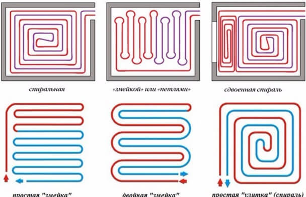 Der Schleifentyp ist dem Serpentinentyp sehr ähnlich. Der einzige Unterschied besteht darin, dass die Spirale nicht einfach, sondern doppelt ist. Dementsprechend müssen Sie etwas mehr Material verwenden. Bei dieser Methode werden die Rohre und der Boden gleichmäßig erwärmt.