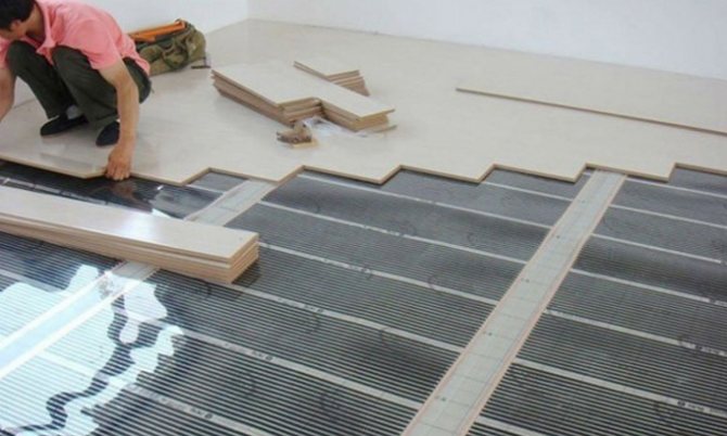 Wenn Sie die alte Beschichtung nicht zerlegen möchten, können Sie einen elektrischen Filmboden wählen. Aufgrund der Konstruktionsmerkmale kann sich das Laminat nicht verformen oder reißen. Die Installation dauert 2-3 Stunden, da für die Installation kein Estrich oder Klebstoff gegossen werden muss.