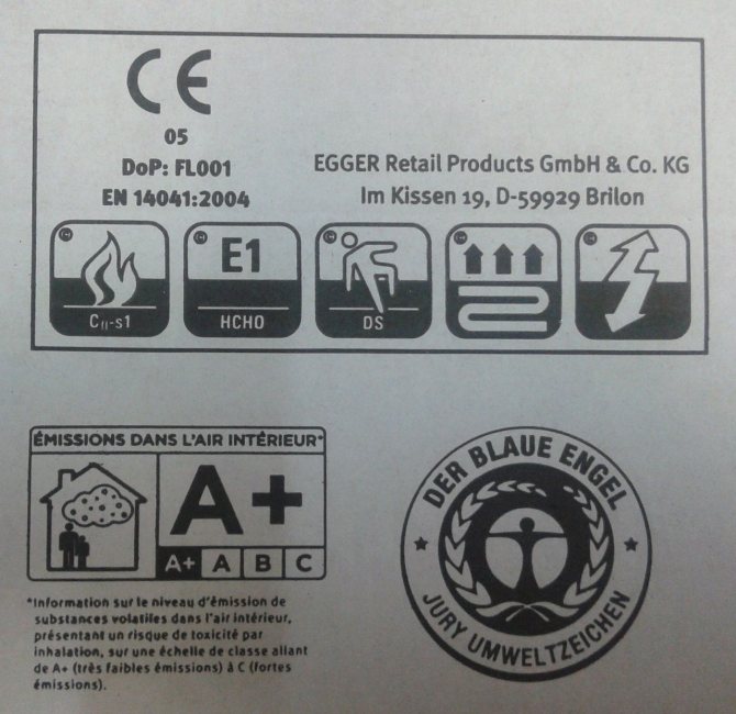Beachtung! Vor dem Kauf eines Laminats sollten Sie die Kennzeichnung auf der Verpackung beachten: Die Dicke der Lamellen muss 8 mm betragen, es muss ein Kompatibilitätssymbol für die Verwendung in Verbindung mit einem warmen Boden vorhanden sein.