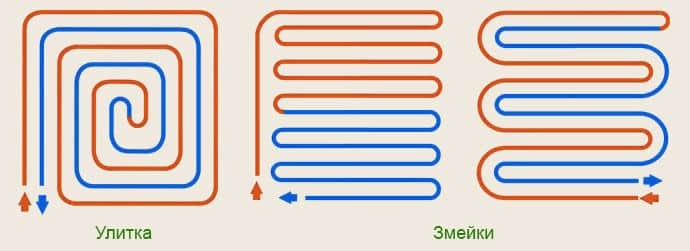 Schema: Arten der Fußbodenheizung