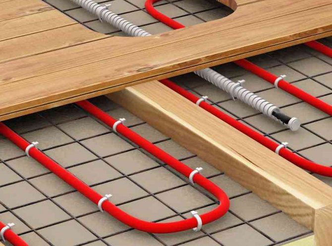 - Wasser-Fußbodenheizung - Gitter von Rohrleitungen, in denen ständig eine Flüssigkeit zirkuliert und auf eine bestimmte Temperatur erwärmt wird. Der Hauptvorteil des Wassersystems ist die Verwendung des bereits in der Wohnung verfügbaren Wärmeträgers zur Erwärmung des Bodenbelags. In der Regel ist beim Betrieb von Steigleitungen mit Zentralheizung die Temperatur des Kühlmittels nicht hoch genug, um die Böden ordnungsgemäß zu heizen. Daher ist es optimal, das Wassersystem in Privathäusern mit einem individuellen (autonomen) Heizsystem zu verwenden.