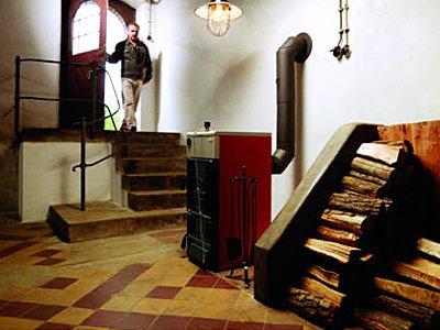 - Wählen Sie einen Installationspunkt. Der Festbrennstoffkessel kann in einem Spezialofen oder in einem separaten Nebengebäude installiert werden