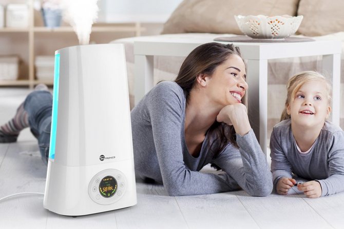 - eine gute Option für zu Hause. Dieses Gerät wird die Trockenheit der häuslichen Luft bewältigen, das Mikroklima verbessern und die Entwicklung von Atemwegserkrankungen verhindern.