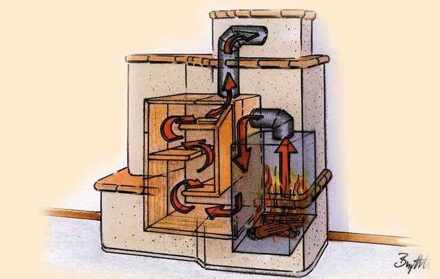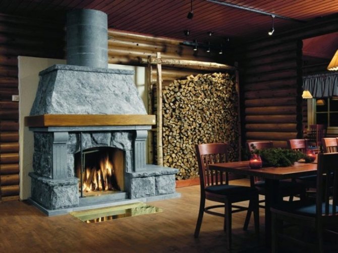 Die Hausheizung kann mit Einheiten verschiedener Kategorien durchgeführt werden. Intermittierende Verbrennungskamine mit einer einzigen Brennholzverlegung versorgen den Raum bis zu einem Viertel des Tages mit Wärme.