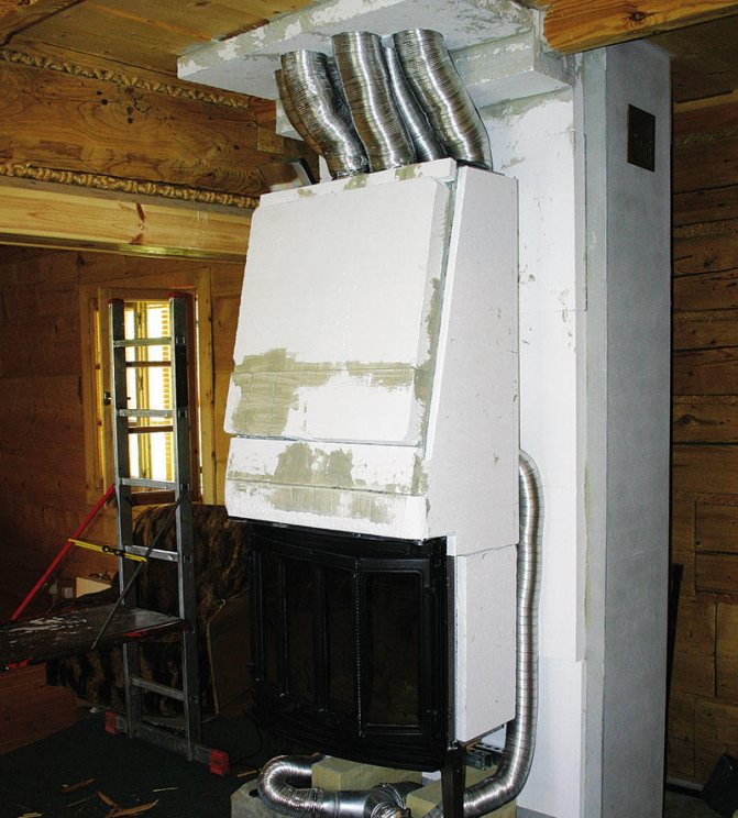 Es ist rationaler, beim Bau eines Hauses einen Kamin mit Luftheizung zu bauen, da Sie sonst mühsame und sehr kostspielige Arbeiten ausführen müssen - Stanzlöcher zum Verlegen von Luftkanälen.