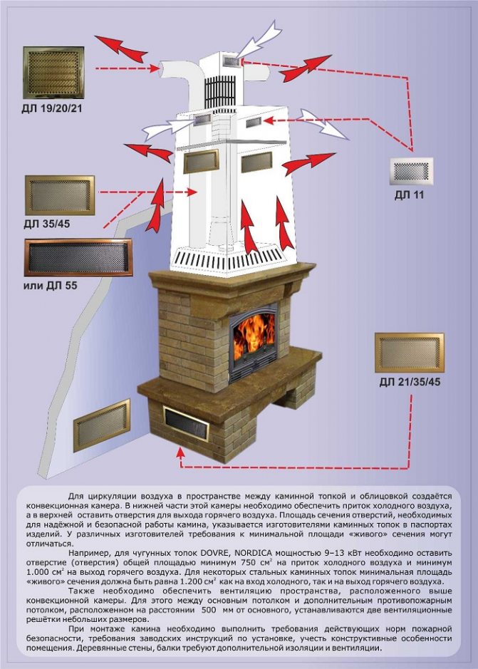 Die Luftheizung von Räumen und Räumlichkeiten mit Kamin sorgt für die Erwärmung der Luft, die zwischen dem Körper des Feuerraums und seiner Außenfläche strömt.