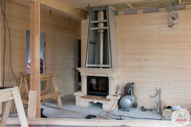 Jetzt wird der Zweikammertyp mehr begrüßt. Außenkameras werden eher für künstlerische und materielle Lösungen benötigt. Der Platz für den Schornstein ist in einer der Wände des Raumes verteilt.