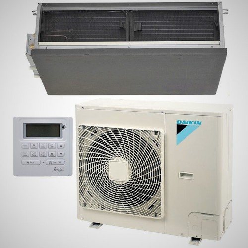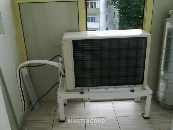 Das Außengerät befindet sich auf der Straße. Es kann auch in Innenräumen installiert werden, dafür muss das Gerät jedoch mit einem Radialventilator ausgestattet sein. Die externen und internen Blöcke sind durch eine dünne Freon-Pipeline miteinander verbunden. Das Innengerät wird hinter einer Zwischendecke oder in einer speziellen Box installiert.