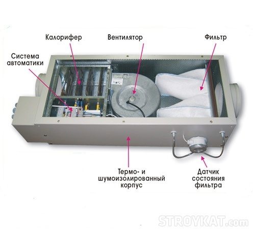 Verwenden Sie zum Erhitzen der Versorgungsströme in der kalten Jahreszeit eine spezielle Heizung, eine Lufterhitzer, die Teil der Kanalaufteilungssysteme mit Versorgungslüftungsfunktion ist.