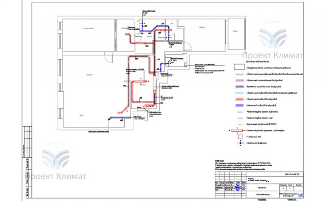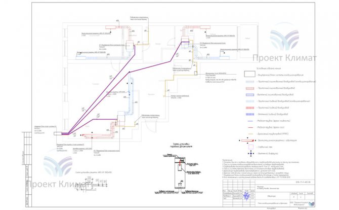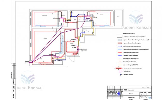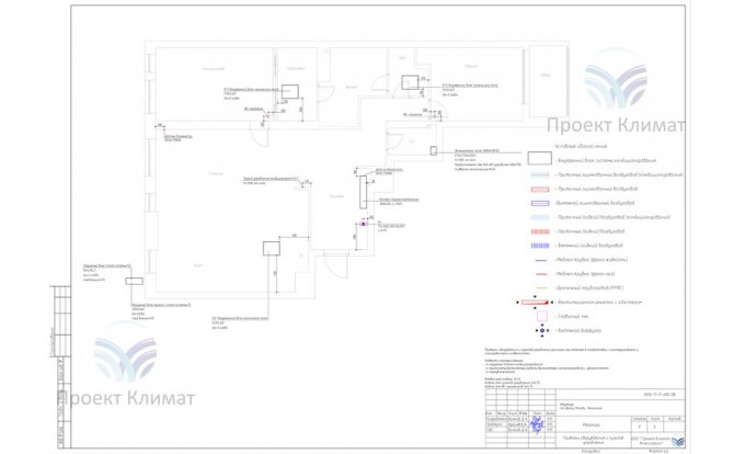 Zusammenfassender Plan der Lüftungs-, Klima- und Befeuchtungssysteme