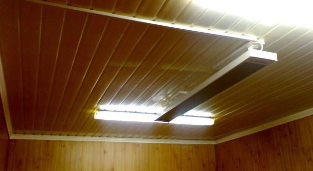 Infrarotstrahler werden an Wänden oder Decken montiert, sodass kein nützlicher Platz verschwendet wird, der für die Anforderungen der Garage und des Autos genutzt werden kann. Gleichzeitig werden die Oberflächen, die direkt der Strahlung ausgesetzt sind, erwärmt. In vielen Fällen ist es am besten, die Infrarotheizung an der Garagendecke über dem Boden anzubringen. Die vom Gerät ausgehenden Strahlen erwärmen den Boden. Und er wiederum wird seine Wärme an den umgebenden Raum abgeben und die Luft erwärmen.