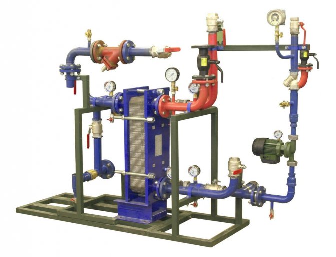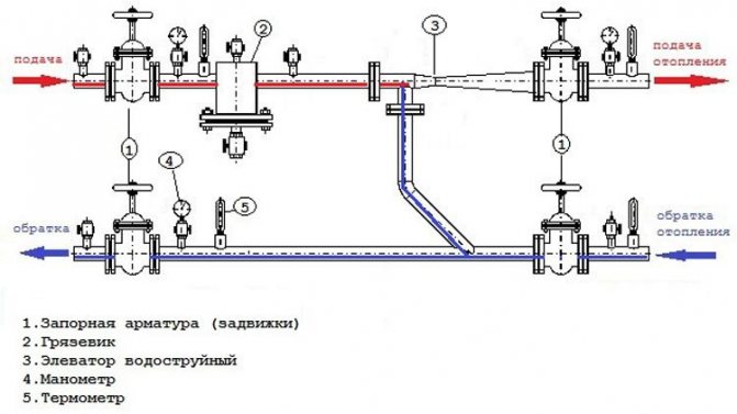 - am Auslass der Hauptleitung vom KWK oder Kesselhaus und an seinem Eingang in das Gebäude (mit einem zentralisierten Schema).