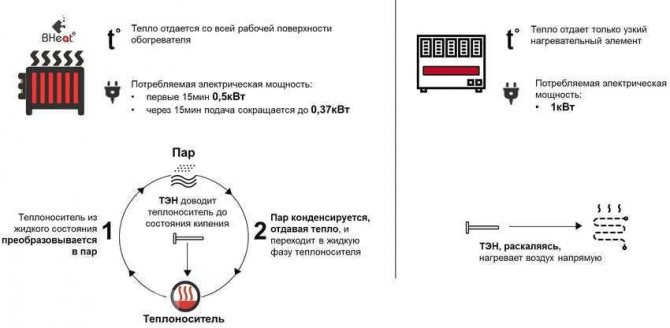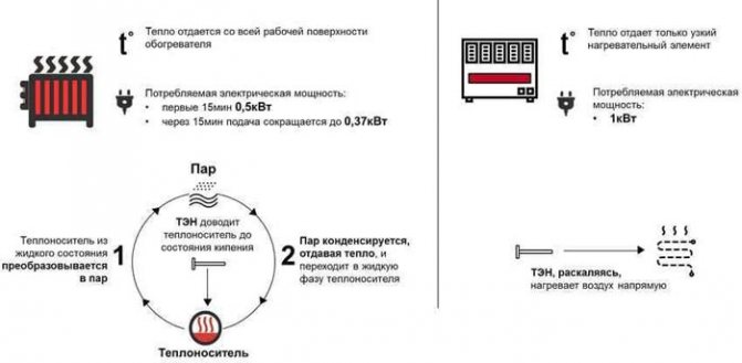 Solche Geräte zur Beheizung von Wohnräumen werden in unterschiedlichen Leistungen (von 0,5 bis 1,5 kW) hergestellt. Darüber hinaus sind sie sehr einfach und haben eine ähnliche Struktur. Jede Art von Dampftropfenkühler kann dem Eigentümer mindestens 10% Strom sparen. Dieser Indikator wird durch die Verwendung spezieller Geräte mit hoher Genauigkeit und Qualität erreicht.