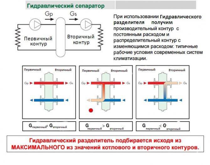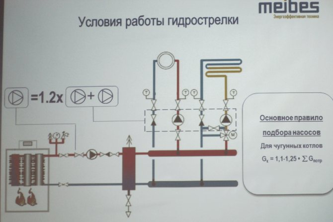 Zunächst versuchen die Konstrukteure davon auszugehen, dass der Pfeil speziell zur Trennung der Hydraulik gedacht ist. In den allermeisten Fällen versuchen die Hersteller heute, Kessel mit eigenen Pumpen herzustellen, und solche Geräte sind recht leistungsstark.