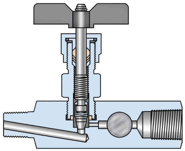 - Nadelventil. Ihr Vorteil ist die Möglichkeit der Halbinstallation.Solche Armaturen können in jeder geeigneten Position angeordnet werden: Sie öffnen / schließen den Zugang des Kühlmittels zum Kühler vollständig und verringern das Wasservolumen in den Heizgeräten erheblich oder geringfügig. Nadelventile haben jedoch auch einen Nachteil. Sie zeichnen sich also durch eine reduzierte Bandbreite aus. Dies bedeutet, dass nach dem Einbau eines solchen Ventils auch in vollständig geöffneter Position die Menge an Kühlmittel im Rohr am Batterieeinlass erheblich reduziert wird.