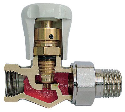 Beim Drehen des Ventils wird der Absperrkegel angehoben oder abgesenkt. In der geschlossenen Position ist der Heizmediumstrom vollständig abgeschaltet. Der Kegel bewegt sich nach oben oder unten und reguliert mehr oder weniger die Menge des zirkulierenden Wassers.