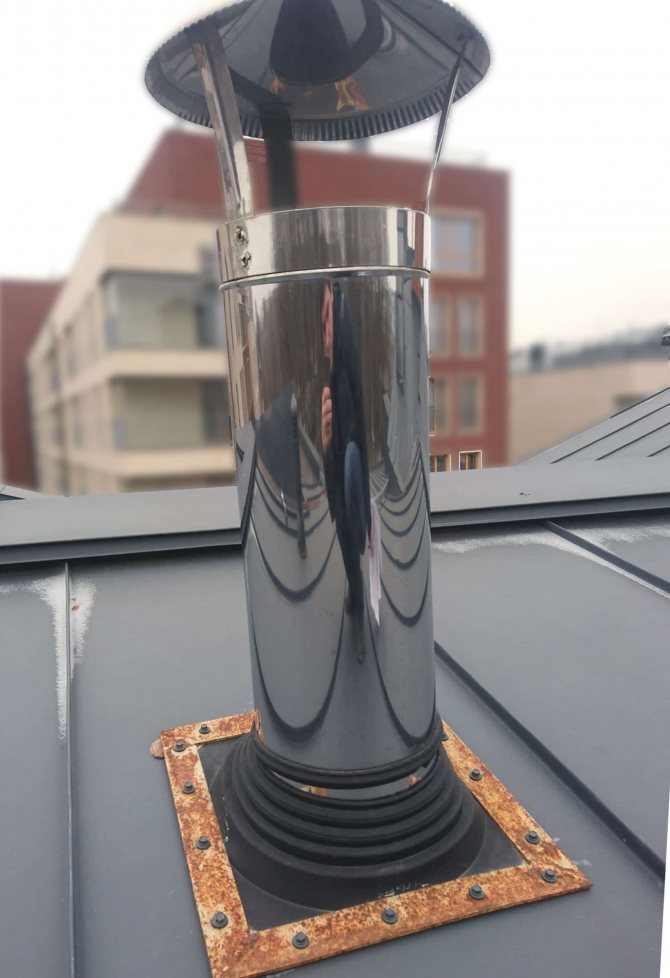 Um dies zu verhindern, sehen die Vorschriften vor, dass der Lüftungskanal, der die Abluft aus den Räumlichkeiten entfernt, in einer Höhe von mindestens 2-3 Metern auf dem Dach austreten muss.