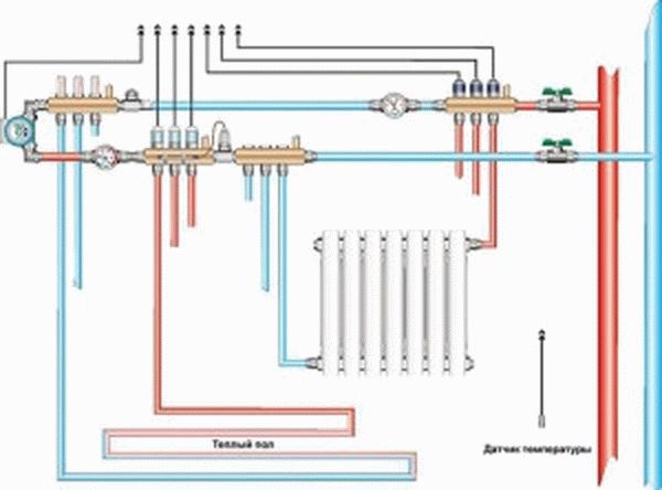 In einem solchen System geht die Verbindung direkt zum Kollektor, wodurch eine gleichmäßige Verteilung der Wärmeenergie über den gesamten beheizten Bereich sichergestellt wird. Bei diesem Schema arbeiten die Vor- und Rücklaufkreise unabhängig voneinander. Das Heizmedium passiert die Heizkörper und wird für den nächsten Heizzyklus zurückgeschickt. Das Ergebnis ist ein geschlossenes System, dessen Betrieb automatisch geregelt wird.