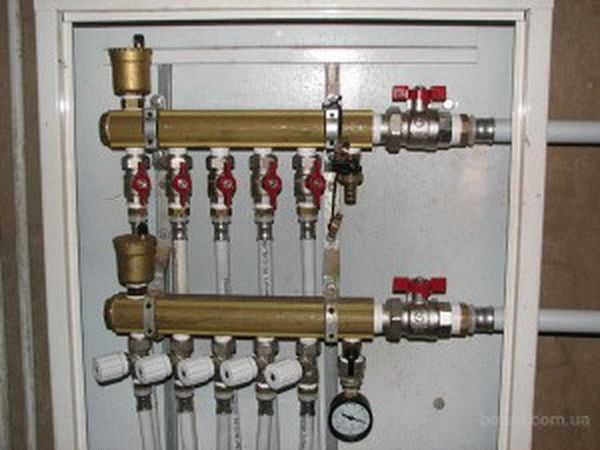 In den Heizungsnischen an den Auslässen der Hauptleitung (Steigleitung) auf jeder Etage befinden sich Kollektoren - Vor- und Rücklauf. Von den Sammlern werden die Vor- und Rücklaufleitungen unter dem Boden jedem Heizkörper in der Wohnung einzeln zugeführt.