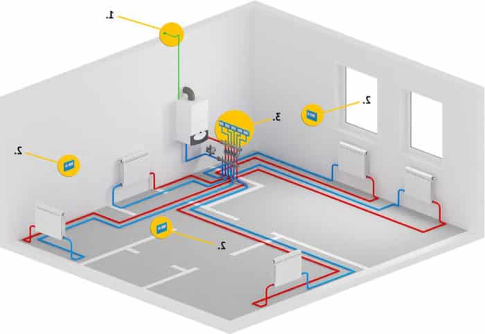 In jeder Wohnung sind alle Elemente des Heizungssystems auf die eine oder andere Weise miteinander verbunden. Die Rohrleitungen können vertikal oder horizontal verlegt werden.