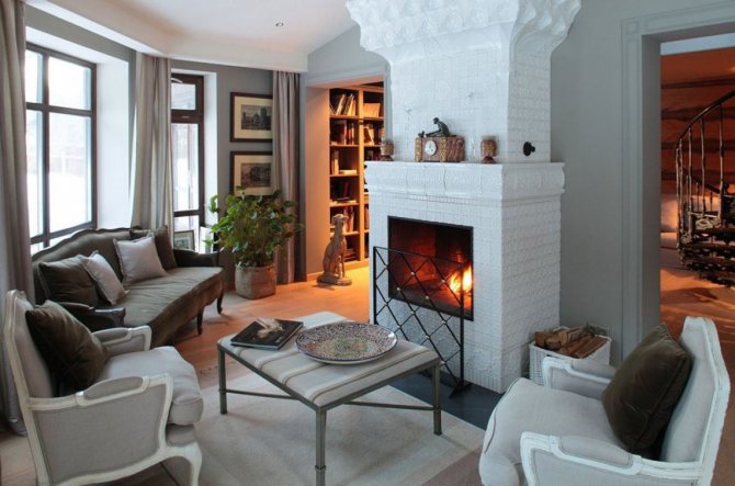 Die volumetrische Form, die von der Pinne gebildet wird, macht die Verkleidung thermisch inert - die Wärmeübertragung der Ofenbeschichtung ist mehrere Tage lang zu spüren. Dank der Kisten entsteht ein Raum zwischen den Fliesen und der Oberfläche des Kamins. Wir schulden es ihm für die Ansammlung von Wärme und eine so lange Wärmeabgabe an den Raum.