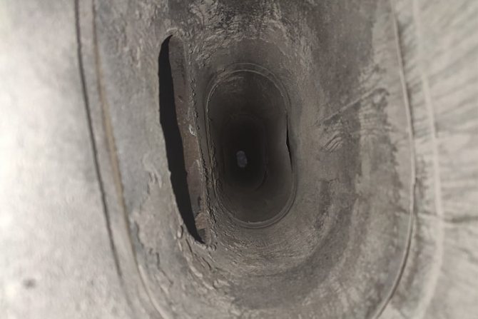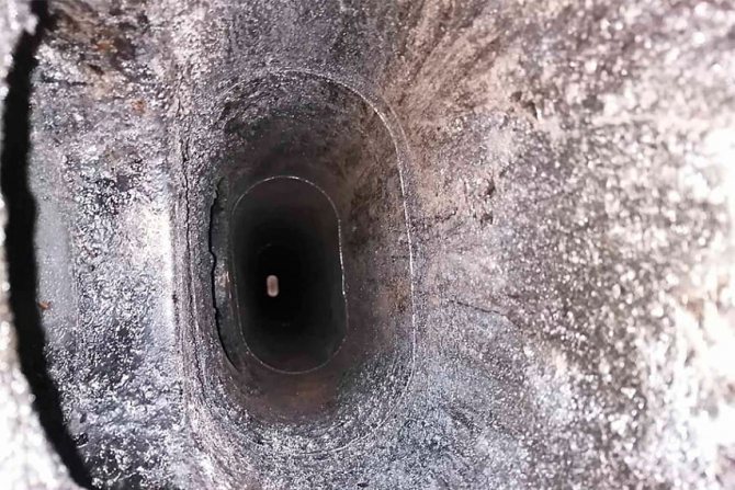 - Wir prüfen das Rohr (auf dem Dachboden und auf dem Dach) auf Tünche.