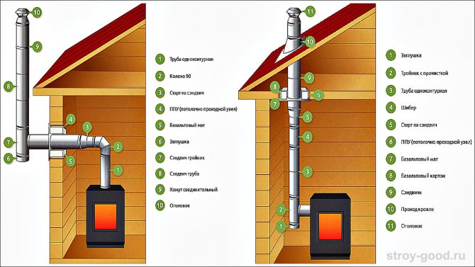 - Wenn Sie ein kleines, einstöckiges, freistehendes Badehaus mit Eisenofen haben, nehmen Sie ein Schornsteinsandwich aus Edelstahl.
