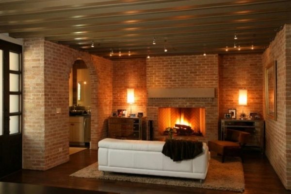 Das Farbschema des Kamins sollte zum Hauptinnenraum passen. Für den "Loft" -Stil eignen sich handgeformte Ziegel mit Alterungseffekt. Für ein klassisches Interieur in Beigetönen - hellgelber Backstein.