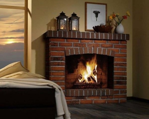 Um unnötige Bürokratie nicht zu riskieren und zu vermeiden, können Sie einen kleinen falschen Kamin oder einen elektrischen Wandkamin installieren. Sie können mit Ihren eigenen Händen einen falschen ziegelsteinartigen Kamin herstellen, und das Feuer wird durch Wachskerzen unterschiedlicher Formen und Höhen ersetzt.
