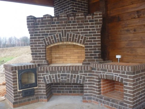 Es gibt verschiedene Möglichkeiten, Ziegelfassaden mit einem eingebauten Feuerraum einzurahmen: