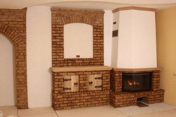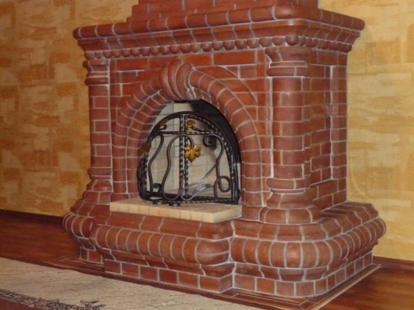 Die antike Wirkung des Kamins kann durch die Verwendung von handgeformten Ziegeln im Mauerwerk erzielt werden. Über die Qualität eines solchen Ziegels muss man sich keine Sorgen machen, er hat die gleichen hochfesten Eigenschaften. Ein solches Material ist jedoch in Bezug auf die Kosten ziemlich hoch. Der Vorteil von handgeformten Ziegeln liegt nicht nur im Aussehen, sondern auch in der Umweltfreundlichkeit. Bei der Herstellung wird reiner Ton ohne Verunreinigungen verwendet.