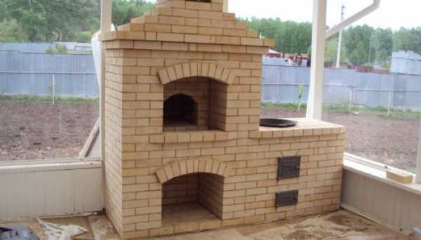 Ein solcher Backsteinofen im Freien ist eine Variante von Bauwerken, die einst in Hütten errichtet wurden und nicht nur als Herd zum Kochen dienten, sondern auch den Raum beheizten. Jetzt dient ein ähnlicher Herd auf der Straße nur noch zur thermischen Verarbeitung von Produkten. Hierzu ist es nicht erforderlich, eine sperrige Struktur mit hoher Wärmekapazität zu errichten, wodurch die Herstellungskosten erheblich gesenkt werden.