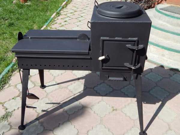 • Ein Holzofen im Freien ist eine einfache und kostengünstige Option. Fertige Modelle haben ein Kochfeld und einen Backofen. Zum Schmelzen werden Brennholz, Kohle, Briketts oder andere Arten fester Brennstoffe verwendet. Die kompakte Version nimmt wenig Platz ein und die Mobilität ermöglicht es Ihnen, die Ausrüstung für den Winter im Hauswirtschaftsraum zu entfernen. Der Hauptnachteil solcher Geräte liegt in einer unzureichenden Funktionalität;