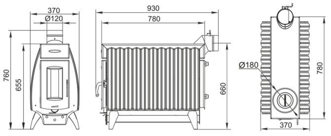 Im Gegensatz zu anderen Modellen der Firma Termofor können Luftkanäle nicht an die Heizung angeschlossen werden. Der Ofen heizt nur den Raum auf, in dem er installiert ist. Bei Bedarf können Sie 1-2 Heizkörper anschließen (die Funktion ist für Modelle der B-Serie vorgesehen) und einen kleinen angrenzenden Raum aufwärmen.
