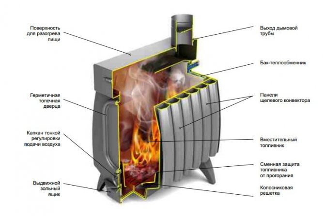 - In Heizöfen der Feuerbatterie bestehen die Roste aus Gusseisen. Dadurch ist der gesamte Kraftstoff vollständig ausgebrannt.