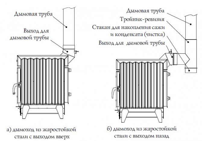 - Die Wahl des Materials - für den Langbrennmodus sind die Traktionseigenschaften entscheidend. Mangelnde Intensität der Rauchentfernung führt zur Ansammlung von Harz und zu einem beschleunigten Überwachsen des Rohrs. Zum Anschluss eignet sich ein isolierter Edelstahlkamin wie ein Sandwich sowie ein Keramikanalogon.