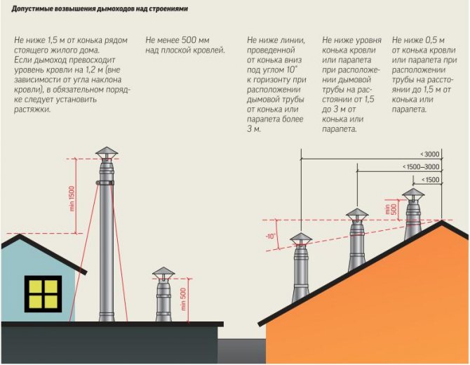 - Der Schornstein ist nicht lang genug. Für eine qualitativ hochwertige Umsetzung der Traktion sollte das Außenrohr 1,5 bis 2 Meter über das Dach ragen.