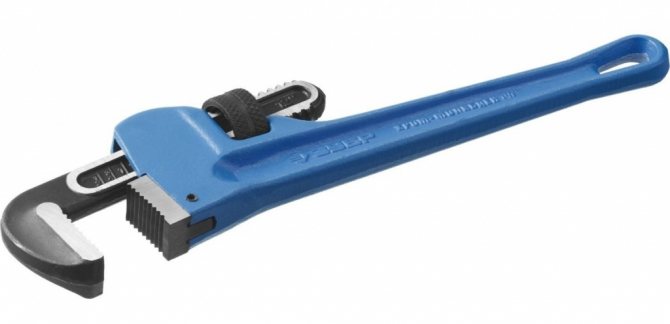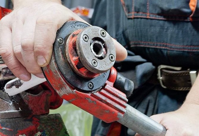 Um eine Verbindung zum Steigrohr herzustellen, müssen die verbleibenden Teile des Rohrs mit einem Gewinde versehen sein.Am bequemsten ist es, eine Ratsche mit langem Griff zu verwenden. Schmiermittel muss zuerst auf das Rohr aufgetragen werden. Es ist wichtig, dass die Lerka reibungslos läuft.