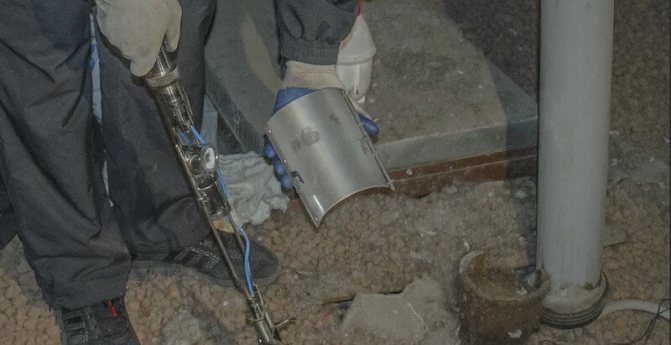 Der Eingriff erfolgt mit speziellen Geräten. Es ist ein Gerät, das mit einer Kamera und Beleuchtung ausgestattet ist, damit der Dämpfer am richtigen Rohr montiert werden kann. Das Gerät wird in einem Abwasserrohr mit einem langen Seil geliefert. Mit seiner Hilfe wird die Armatur demontiert, wodurch die Entwässerung übertönt wird.