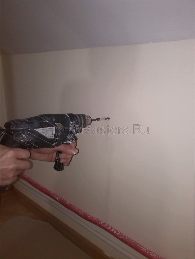 Die Löcher für die Befestigungselemente sollten mit der gleichen Bohrergröße wie das Befestigungselement selbst gebohrt werden, und das Befestigungselement muss genau in die Wand passen. Nachdem der Dübel eingeführt wurde, muss er ummantelt (vollständig gehämmert) werden.