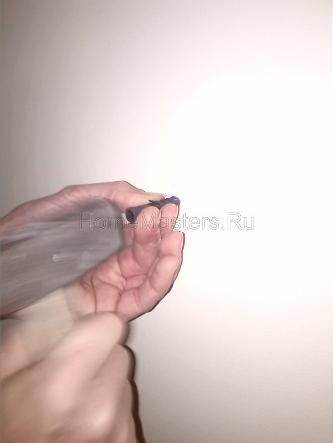 - Bereiten Sie Löcher vor und befestigen Sie selbstschneidende Schrauben, an dem jede Halterung für Stahlheizkörper aufgehängt wird. Zwischen der selbstschneidenden Schraube und der Wand sollte ein Abstand von 4 bis 5 mm bestehen.