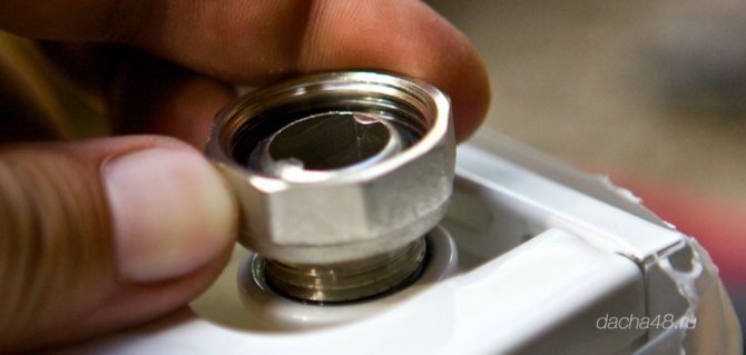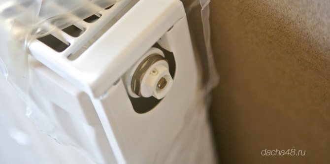 - Anstelle von Kunststoffstopfen sind am Kühler Mayevsky-Hähne und Stahlstopfen sowie Absperr- und Steuerventile installiert. Die Installation der Gewindebohrer und Armaturen erfolgt je nach Installationsschema.